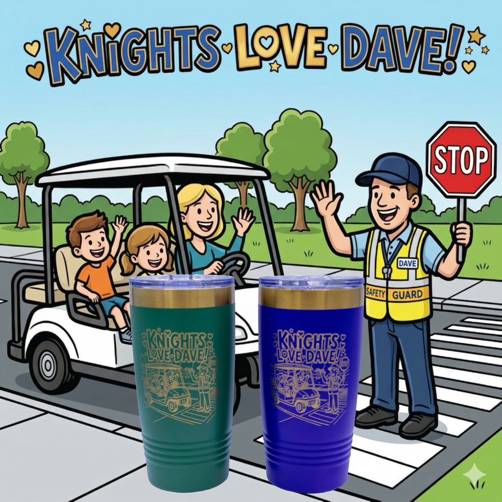 Our beloved crossing guard, Dave Spatz, affectionately known as Mr. Dave was hit by a car on March 23rd. Proceeds from the sale of this tumbler will be directly given to the Spatz family to show our Kedron family support.